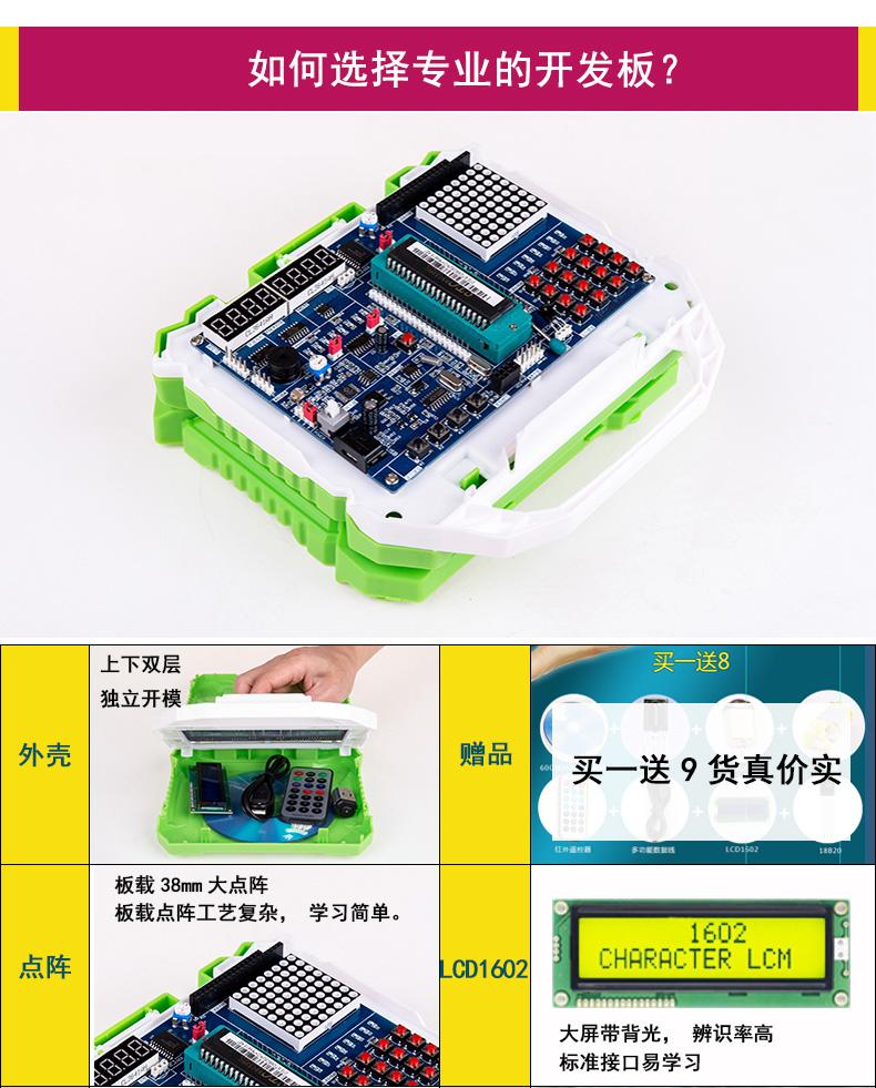 没有C语言或汇编基础,没有电路基础,首先要对以上基本知识进行补课,然后购买一块MCS51的开发板就可以快速入门学习 ,本人使用的是以下这款适合初学者快速入门的开发板(价格:110元)。